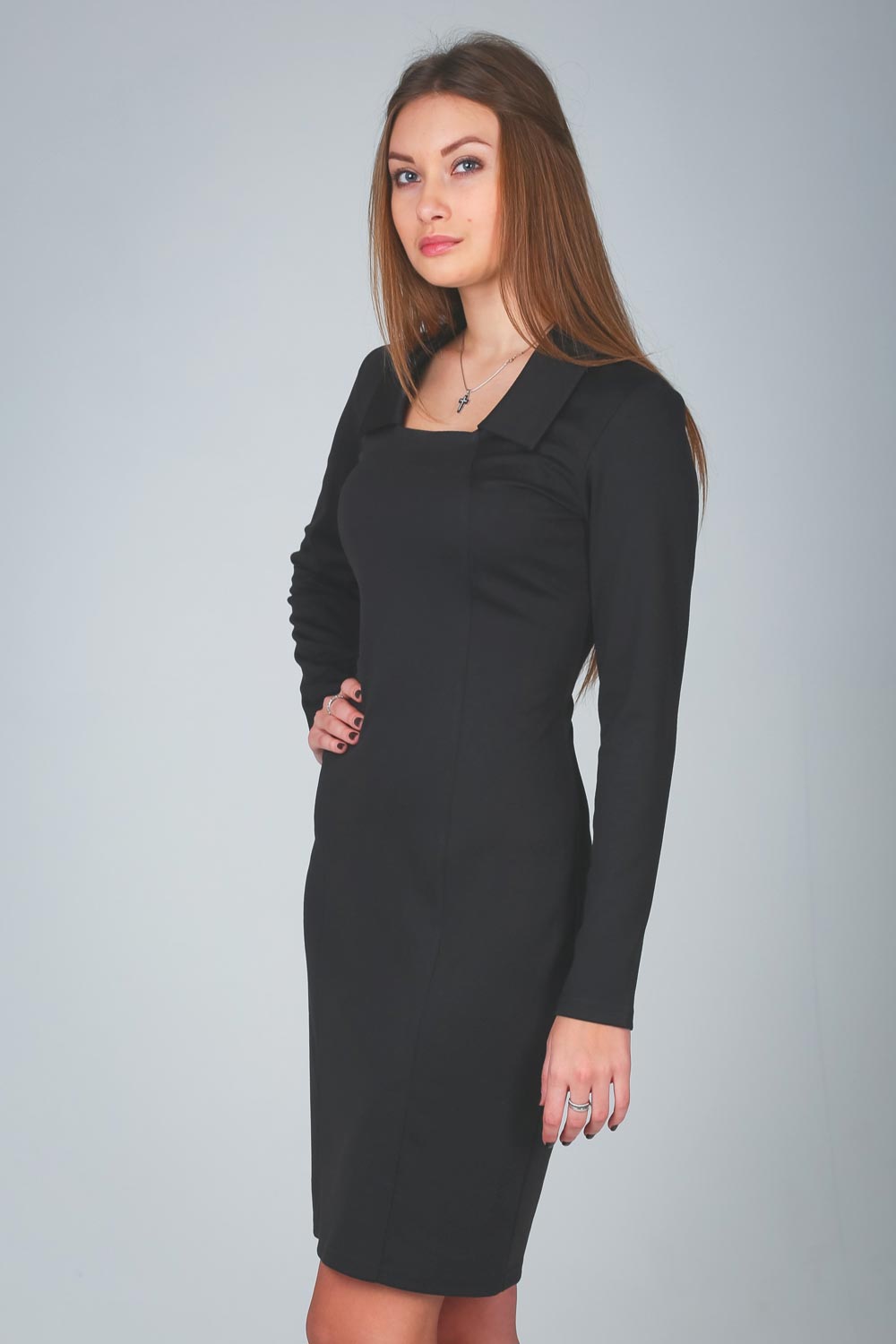 Классическое , строгое платье из плотного трикотажа полуприлегающего силуэта .Изюминка платья в области груди - форма выреза и воротника . Размер S соответствует 44р.
