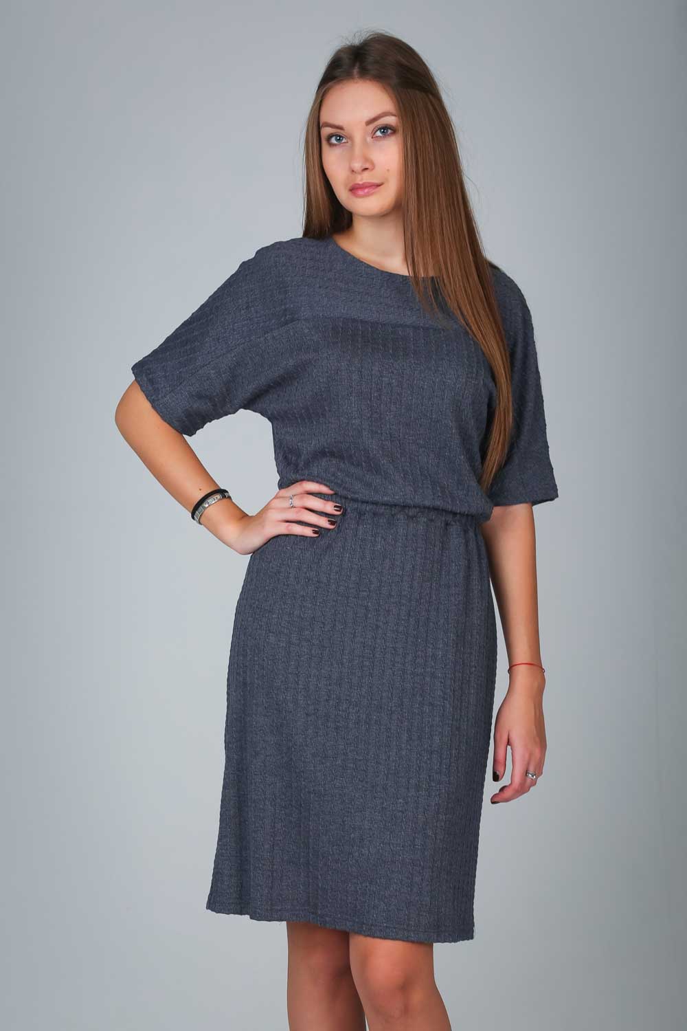 Платье из приятной вязанной ткани эффект «КОСИЧКИ», свободного кроя (на подкладе из вискозы) и мягкой сборки на резинки в области талии .Хороший выбор на каждый день. Большемерки.