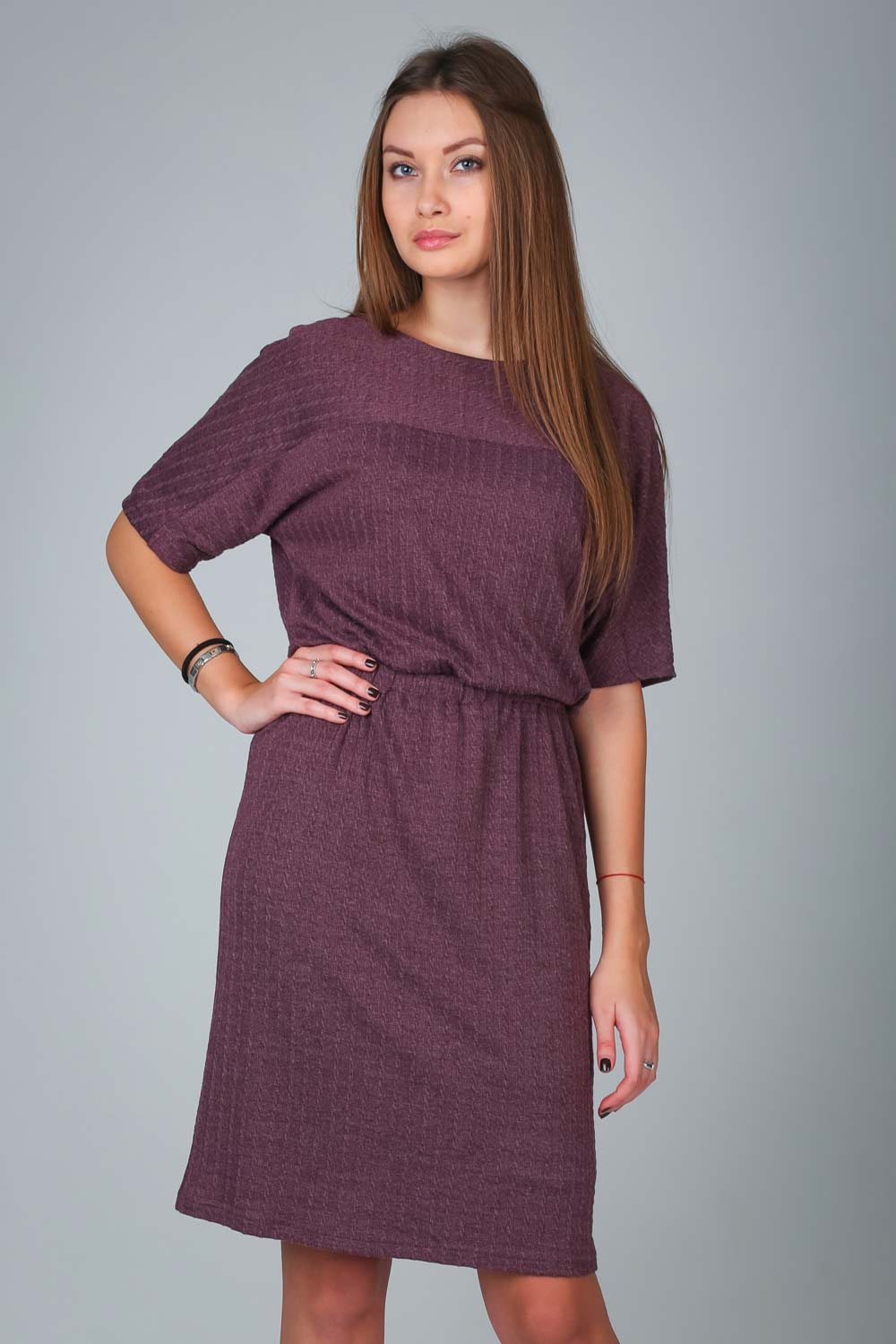 Платье из приятной вязанной ткани эффект «КОСИЧКИ», свободного кроя (на подкладе из вискозы) и мягкой сборки на резинки в области талии .Хороший выбор на каждый день. Большемерки.