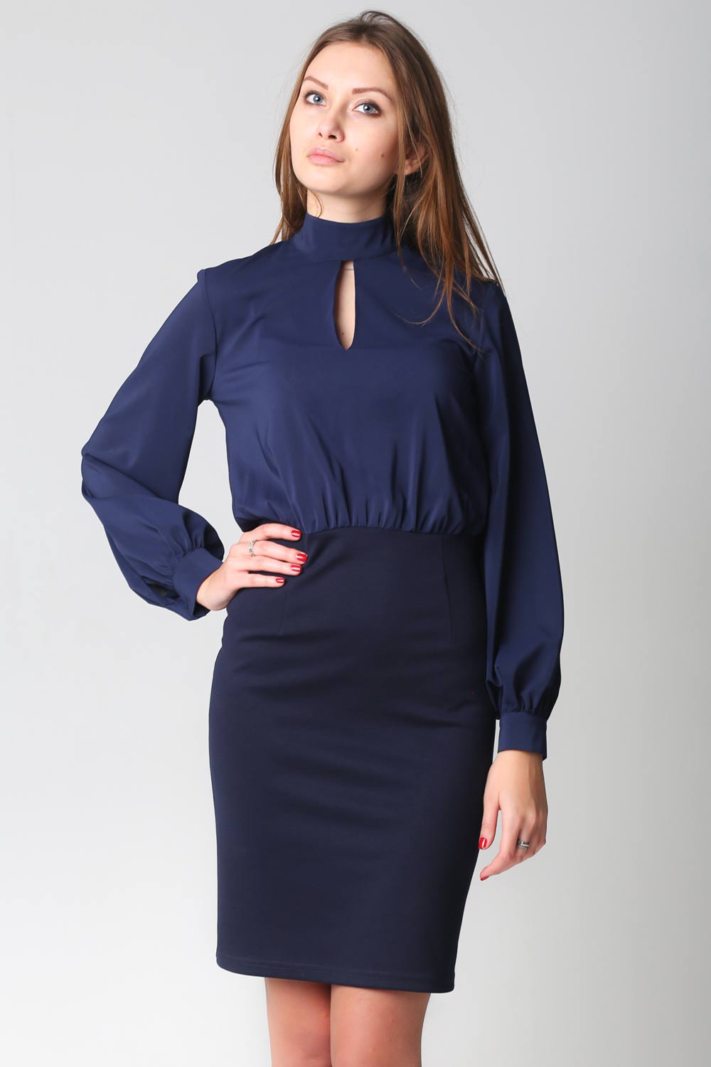 Очень элегантное платье из трикотажа в виде юбки футляр и женственного верха из струящегося шифона свободного покроя.