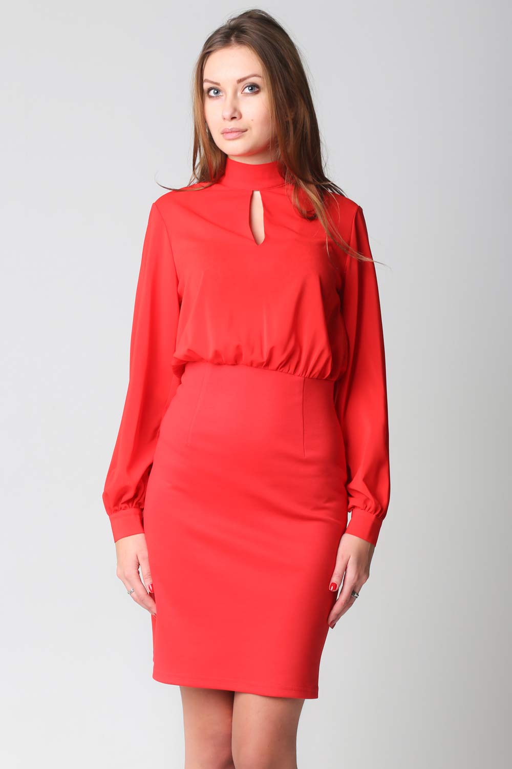 Очень элегантное платье из трикотажа в виде юбки футляр и женственного верха из струящегося шифона свободного покроя.