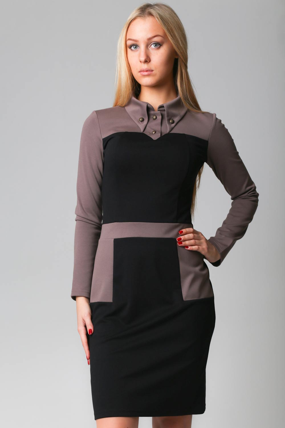Это стильное и удобное решение для вашего гардероба. Детали: плотный трикотаж хорошо тянется. изделие решено в контрастной цветовой гамме, выточки создают плотную посадку по фигуре. Воротник рубашечного покроя придает строгость .